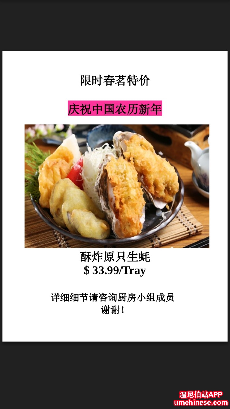 你还在发愁年夜饭吗?为了庆祝农历新年,大型连锁Save On Foods Northgate店厨房小组特推出限时美味。欢迎来预定,记住不是所有连锁店都可以预定,只有Northgate店。欢迎捧场!