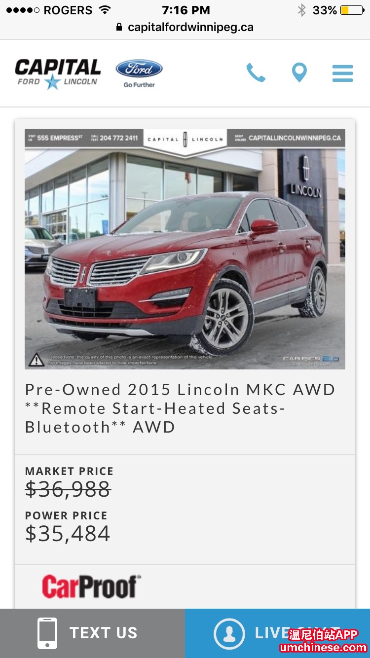 少见的二手新款 2015年MKC 真皮座椅 全景天窗 导航 等一切fancy的功能应有尽有 2.3T 强劲动力 并且非常出色的油耗表现 公里数: 54000km 仅售: $35484 大家好!我是Capital Ford Lincoln的华人销售顾问 ...