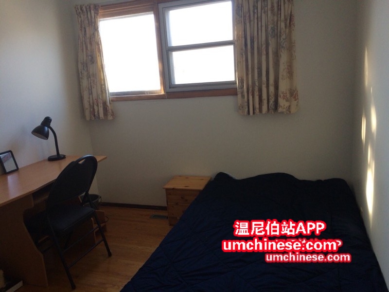 位于新Sobeys 后面。楼上,光线充足,冬暖夏凉。交通便利。10分钟车程去曼大。步行上初高中。单人床,学习桌,椅。包水电暖,洗衣。$430/月。随时入住。电话2045099868联系