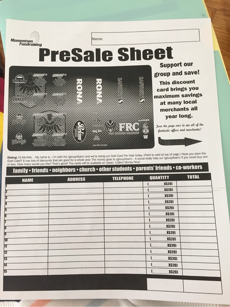 学校毕业活动,二十刀一张优惠券,可以在Safeway,subway,Perkins,Rona Winning, Wendy's ...