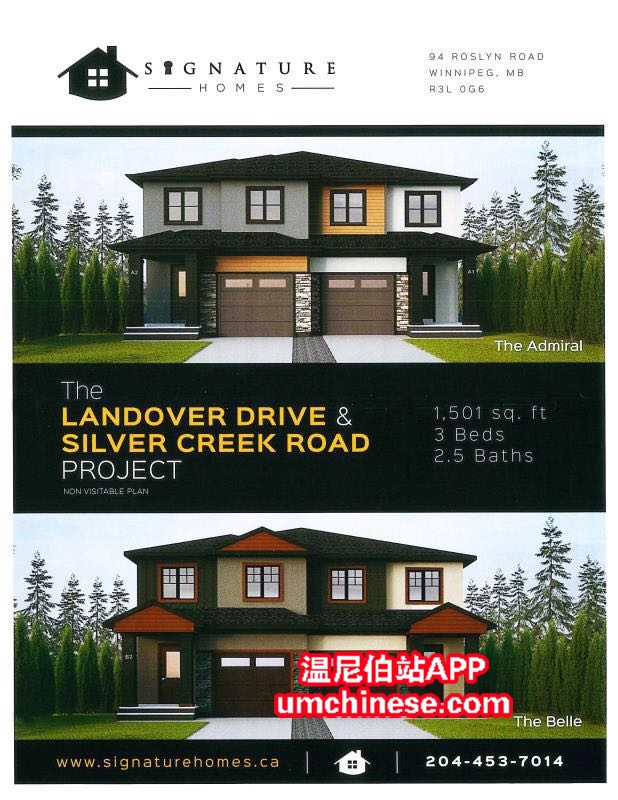 著名温尼伯建筑商 Signature Homes 隆重推出湖边联排别墅! 升级丰富,价格合理!具体信息请大家看图片里的详细信息,欢迎大家致电 204-330-6039。或者扫下面图片里面的二维码添加微信联系 (或者加微信好友410456244 ...