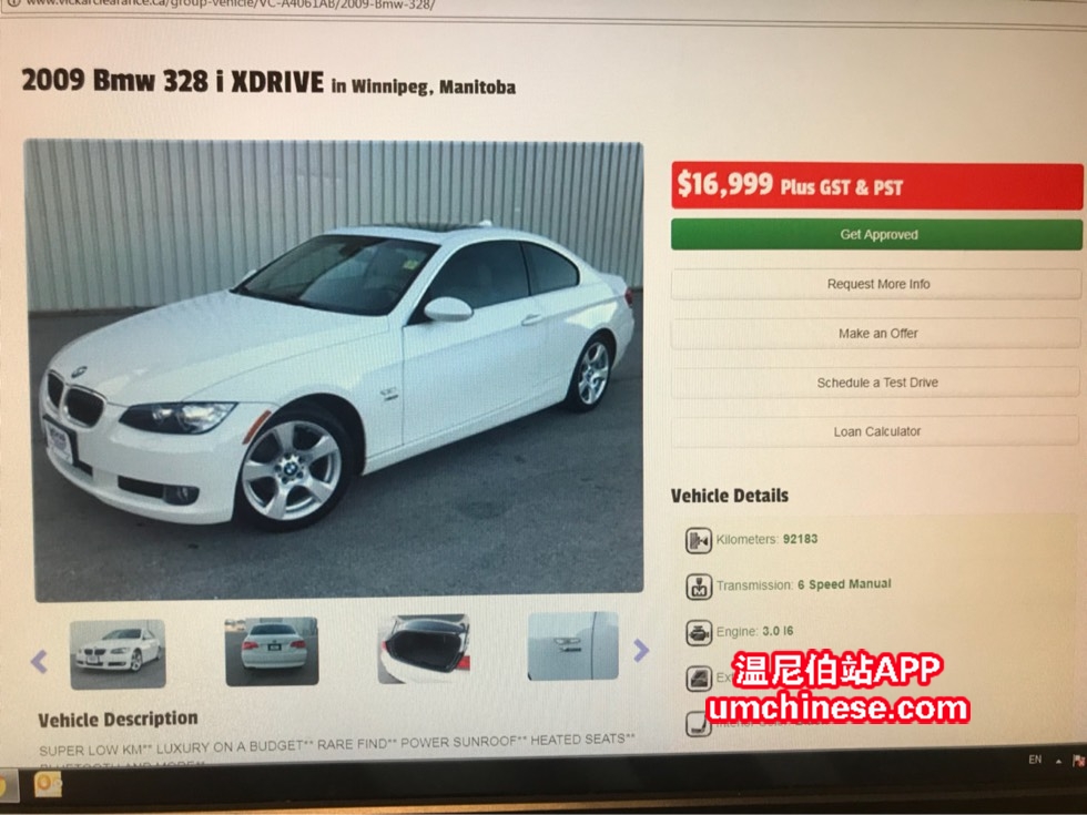 Stock Number:N/A 2019 BMW 328xi 天窗 真皮座椅 手动变速箱 92,183km $16,999 详情请垂询(431)777-8968 Tank 刘 微信:Tankman369 支持看车接送服务 VICKAR MITSUBISHI 950 Regent Avenue West, Winni ...