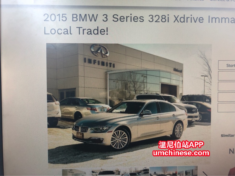 大家好,我是Brichwood Nissan的汽车顾问。现有一辆bmw 328i xdrive,本地车,售价只要$26491,59450km。四驱车,LED日行灯,大屏,有倒车影像和雷达,蓝牙,分区空调,座椅加热等等。我们车行支持留学生和新移民贷 ...