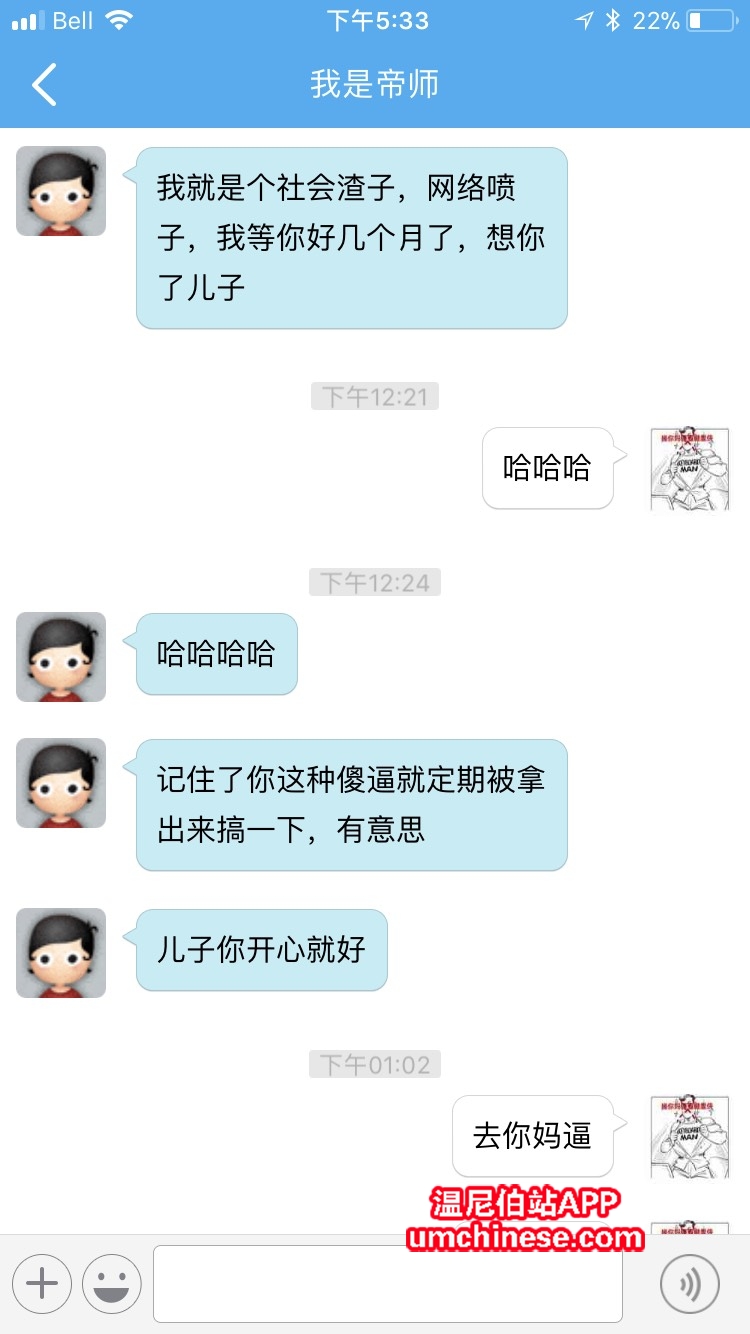 stussy2012 发表于 2018-4-13 18:27 你瞅瞅你这怂货说的这些怂话 你真怂 我就问你一点!这次我特么是怎么得罪的你这个狗懒子?你说来听听 你 ...