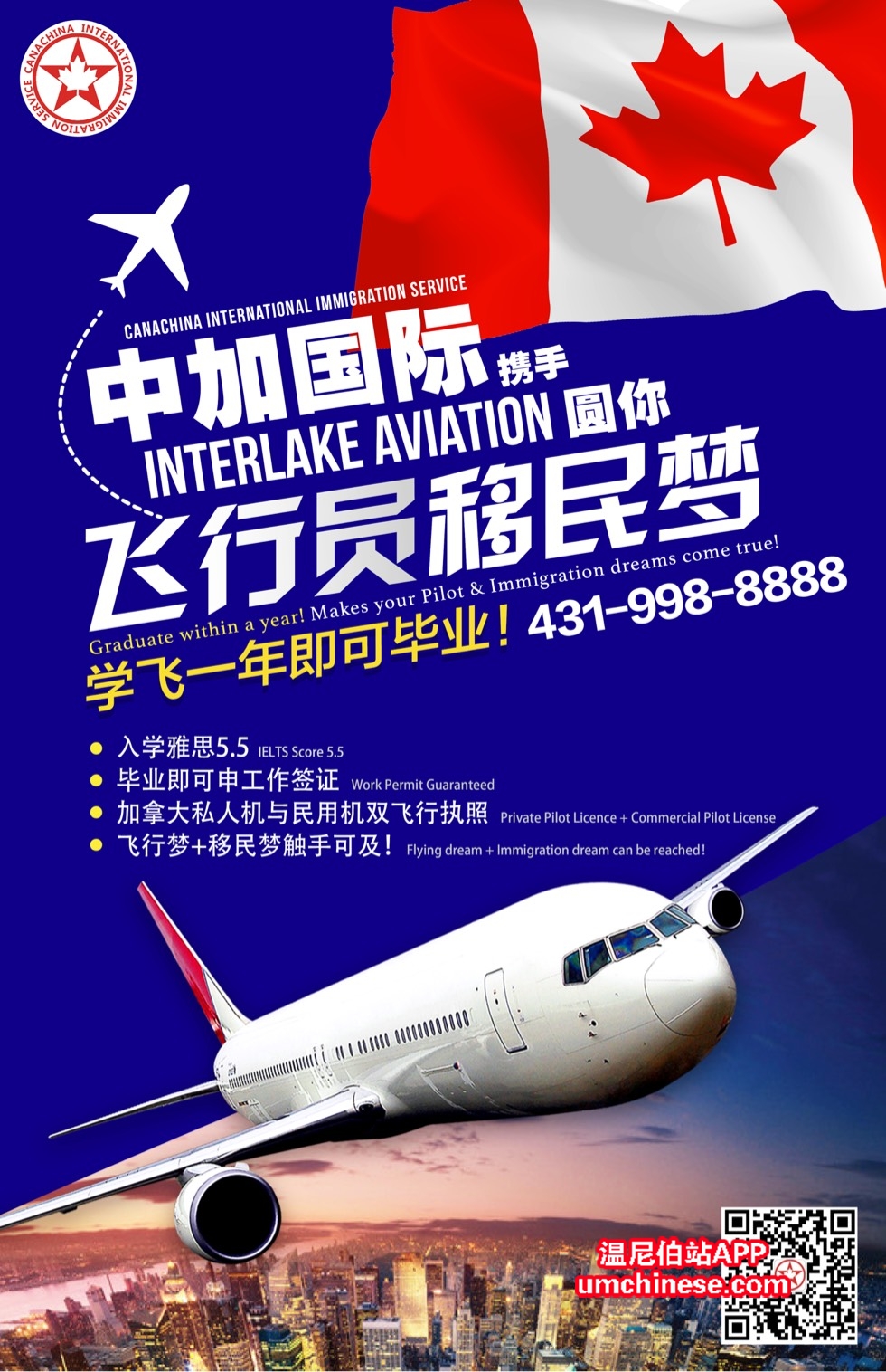 【自由翱翔在蓝天白云之间】+ 【移居到最适合人类居住国家】两个梦想一次实现,【中加国际】独家飞行员移民项目隆重推出!名额有限!速联系!
