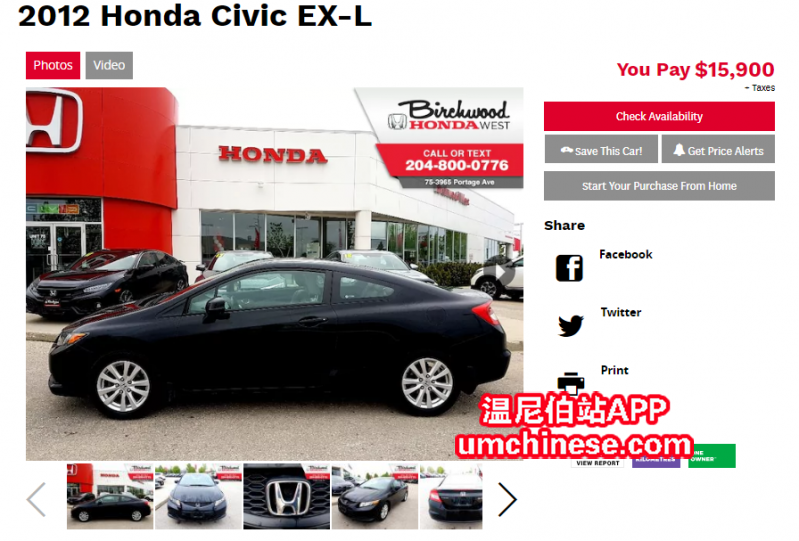 - 这台车通过了高标准的Birchwood Safety 级别的检测,被我们完全维护过了,所以质量和车况保证,不会出现让客人买回家为车况而担忧。 -本田以其世界级的可靠性而闻名。我们位于PoinT WEST Autopark Portage ave, ...