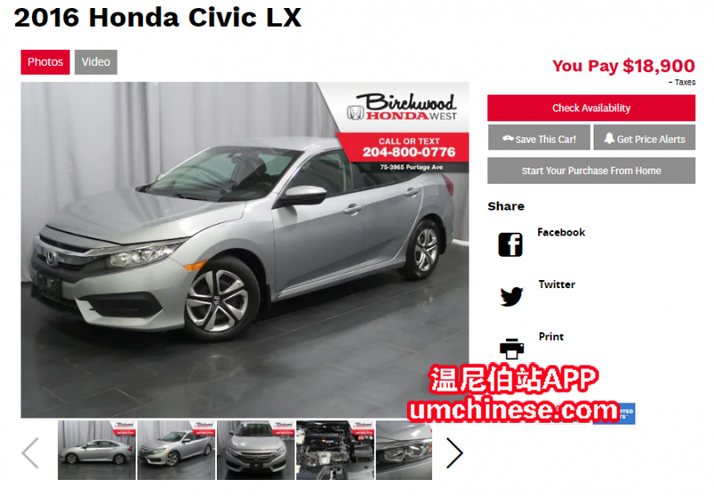 2016 本田 思域 标配 无事故 倒车影像 加热座椅, 蓝牙,Car-play等功能 月供在300-320左右 - 这台车通过了高标准的Birchwood Safety 级别的检测,被我们完全维护过了,所以质量和车况保证,不会出现让客人 ...