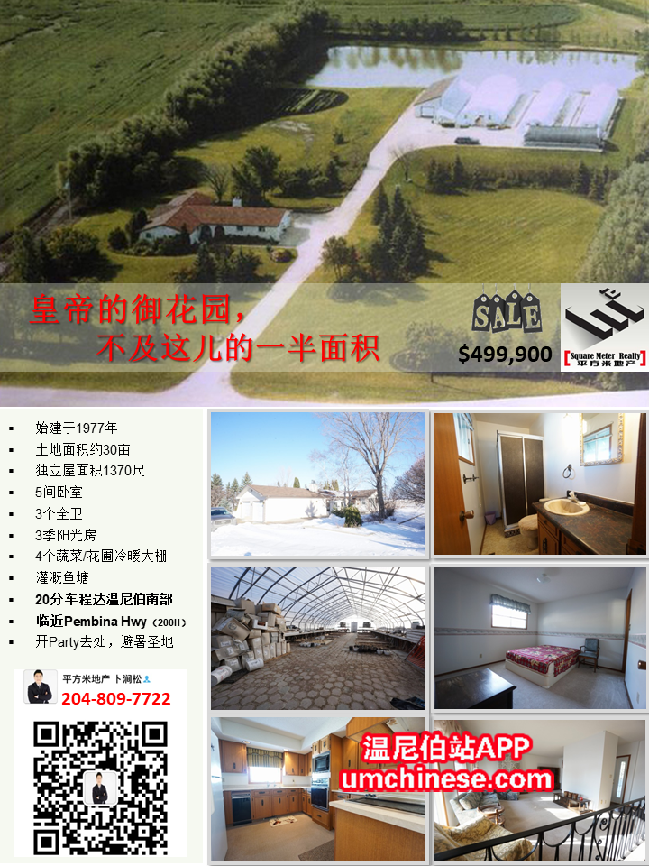 平方米地产独家房源,联系电话:204-809-7722