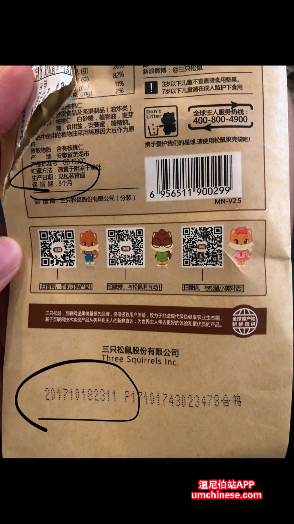 大营正买了包三只松鼠零食,打开一吃味道不对,看了眼背后保质期,自己贴的白标显示18年10月20到期, 撕开标签,厂家标注保质期8个月,生产日期,2017年10月,算一下到现在这个东西已经过期两三个月了 我拿去退货, ...