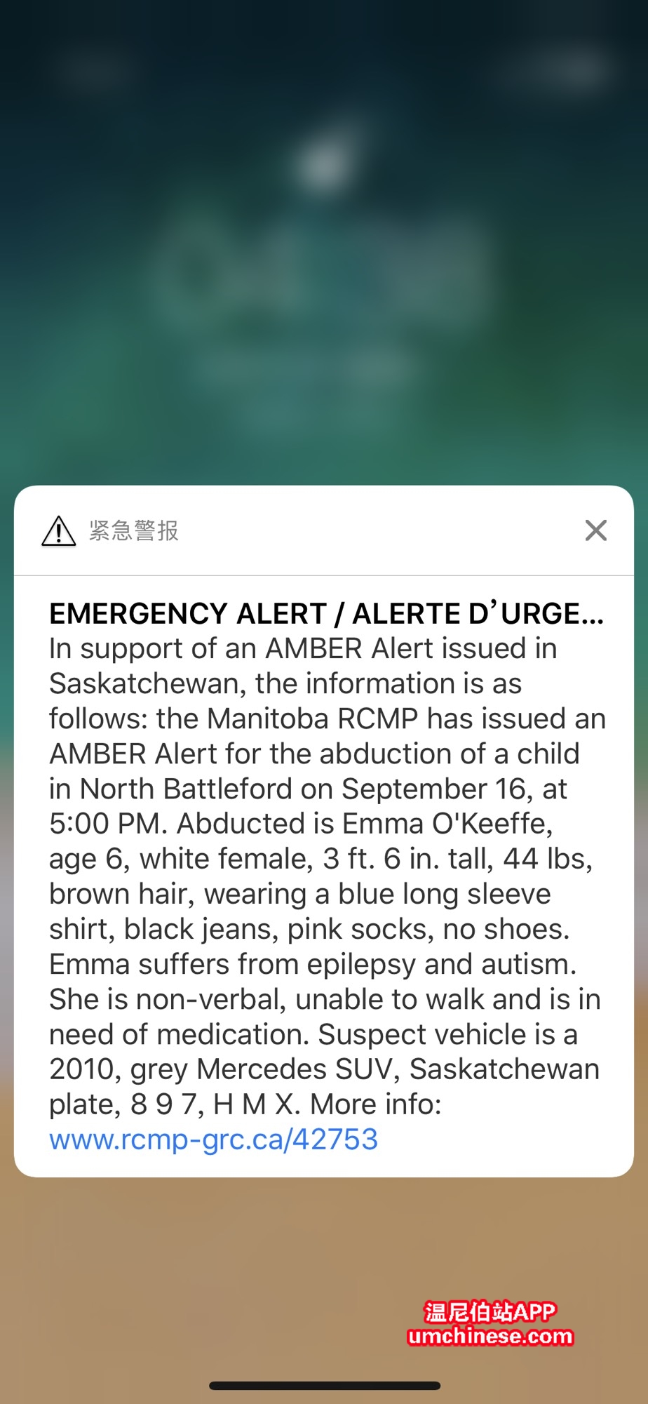 专治装逼范 发表于 2018-9-17 14:20 我真为你的无知和下贱感到着急,什么事都牵扯到民族情绪上! 先搞明白AMBER Alert是什么再BB。