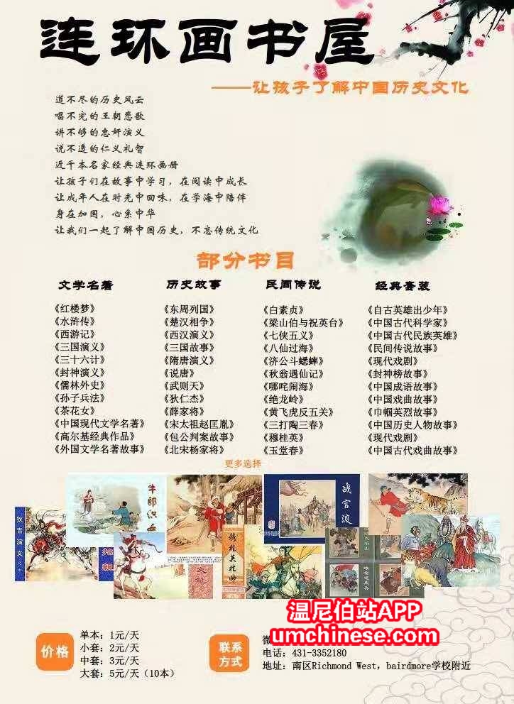 身在加国,您是否担心孩子不了解中国历史和传统文化? 是否曾为孩子的中文阅读退步而焦虑? 来我们书屋吧,上千本收藏级连环画出租 从东周列国到鸦片战争 从民间传说到历史故事 从小说戏曲到文学名著 寓教于乐,让孩 ...