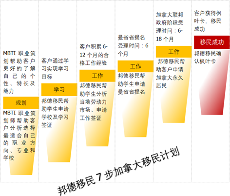 邦德移民拥有加拿大注册职业规划师,通过MBTI性格职业测试了解客户自身优缺点和性格类型取向,为客户确定所学专业、学校和职业方向,提供职业发展规划和求职导师服务。
