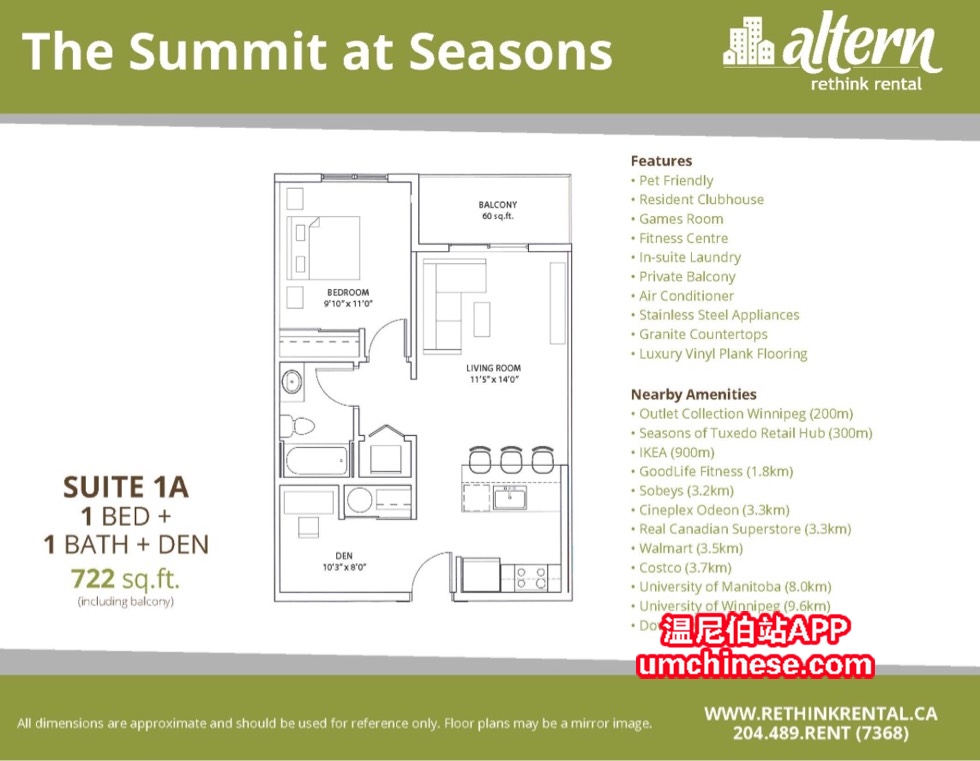 南区奥莱边上的全新公寓转租 坐北朝南 一共四层楼 我的在三楼 12月1日起可以入住 一卧+一卫+一Den+一厅+一厨+阳台+公寓内自带洗衣房+室外停车位一个 小区免费健身房+桌球…… 1250租金+40停车费 ...