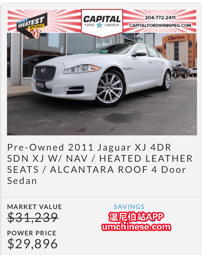 我店目前有少量质优价廉的高端二手车 主要品牌包括 捷豹、奥迪、林肯等 更多信息请来电咨询 电话:204-898-7766 微信:JackZhangCanada