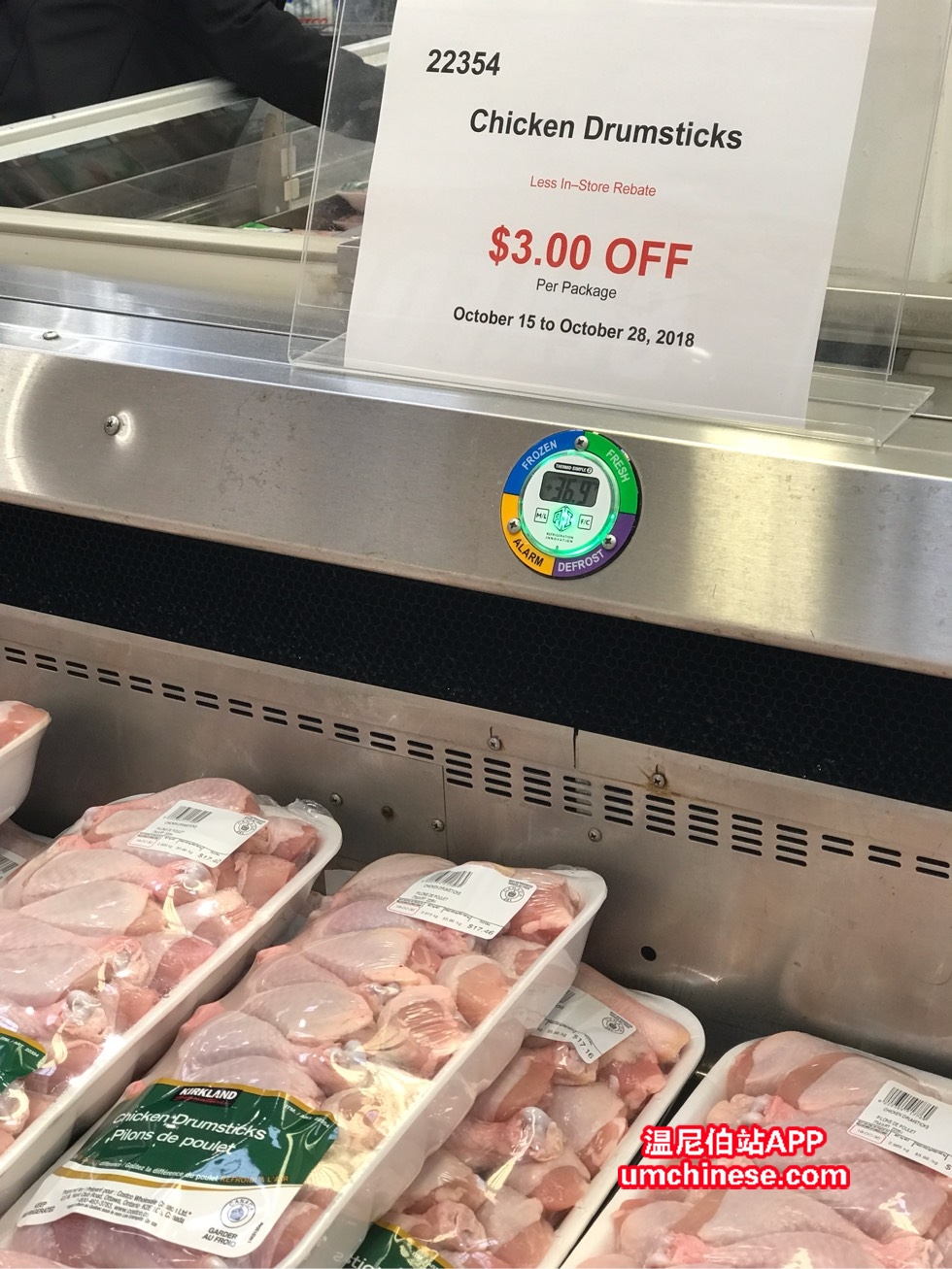 温尼伯今天阴天,室外十度左右还蛮舒服的~至少不冷了哈 下面是今天的打折促销信息~ Costco:鸡腿$3off