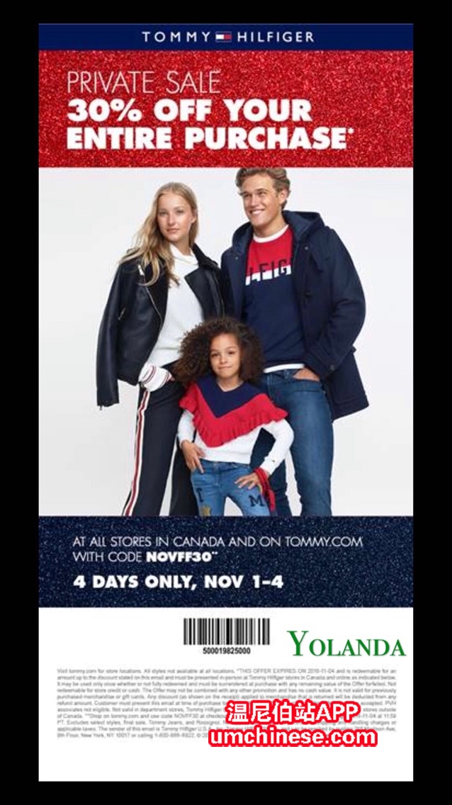 11月1-4号,没有最低消费金额限制,全场七折,进店消费出示即可,一年仅两次,欢迎分享