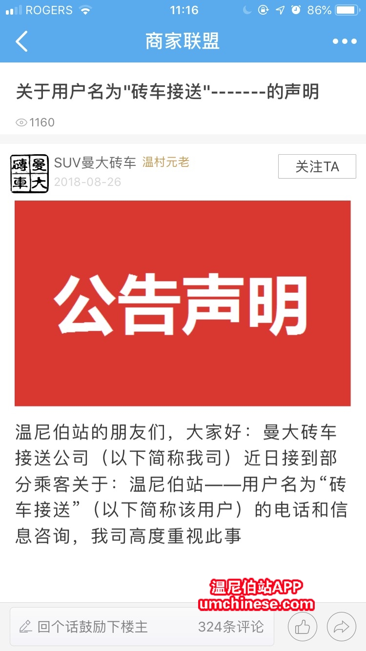 曼 大 砖 车 竭 诚 为 您 服 务 曼大砖车---政府批准正规运营服务。 曼大砖车--- M P I(曼省公共保险公司)全额申报第三者乘客乘用保险。 曼大砖车---温尼伯警察局,加拿大皇家骑警,双部门备案团队。 曼大砖车---专业全职司机竭诚为您服务。 为您提供机场接送、市区接送,短途、假期旅行,市区内小型搬家用车服务 请认准唯一服务热线电话:204-2937977.(支持短信预约) 请认准唯一服务微信号:14125365(方便国内飞Winnipeg的朋友预约) 砖 注 安 全 , 砖 心 服 务