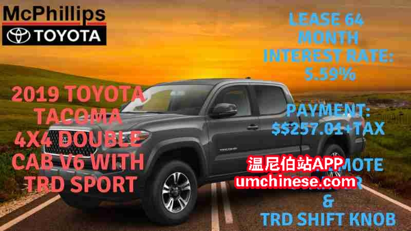 LEASE 新车今日特惠! (**2019丰田TACOMA Double Cab 4X4 特别运动版**) (**X038933**) 这台车今日只要 (**$257.01每两周 **利息5.59%**64个月Lease**) O.A.C. 加税. 现金(**$46485.50**)加税. 折 ...