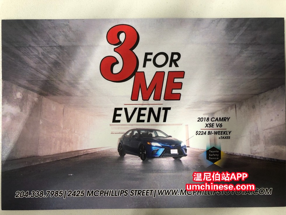 2018年年末McPhillips丰田今年最盛大的节日“3ForMe”将在下周三,11月21号!这是一个很大很大的折扣活动日,在这个盛大的节日中,我们将为你在保留你现有的LEASE或者贷款账单不变的情况下,我们公司将为你所购买的 ...