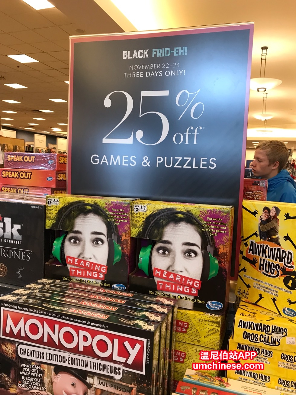 温尼伯这两天温度有回升~现在室外-3度~多云 Chapters基本每个section都有打折! 玩具和拼图75折