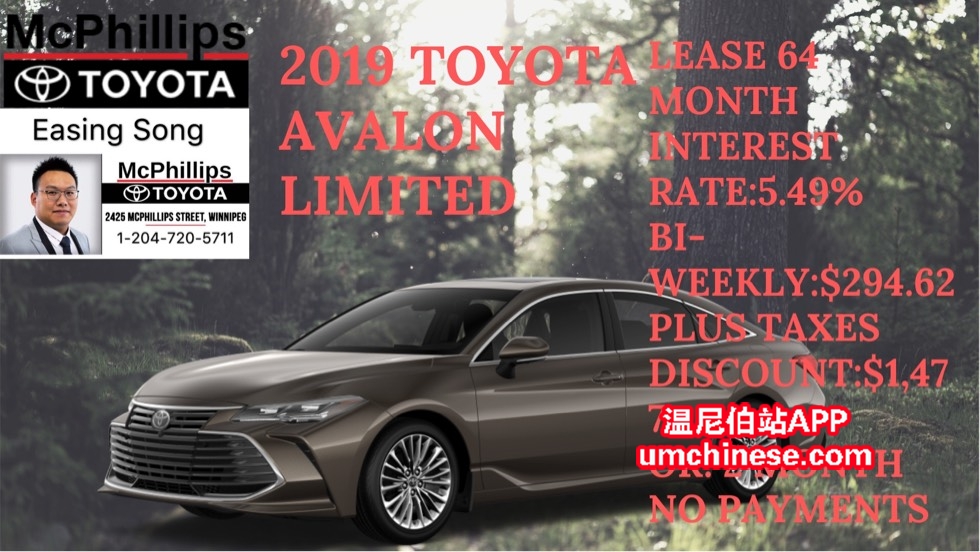 LEASE 新车今日特惠! (**2019丰田亚洲龙尊享版**) (**U001441**) 这台车今日只要 (**$294.62每两周 **利息5.49 %**64个月Lease**) O.A.C. 加税. 现金(**$48,406.70**)加税. 欢迎今天给我打电话:204-720-5711 折 ...
