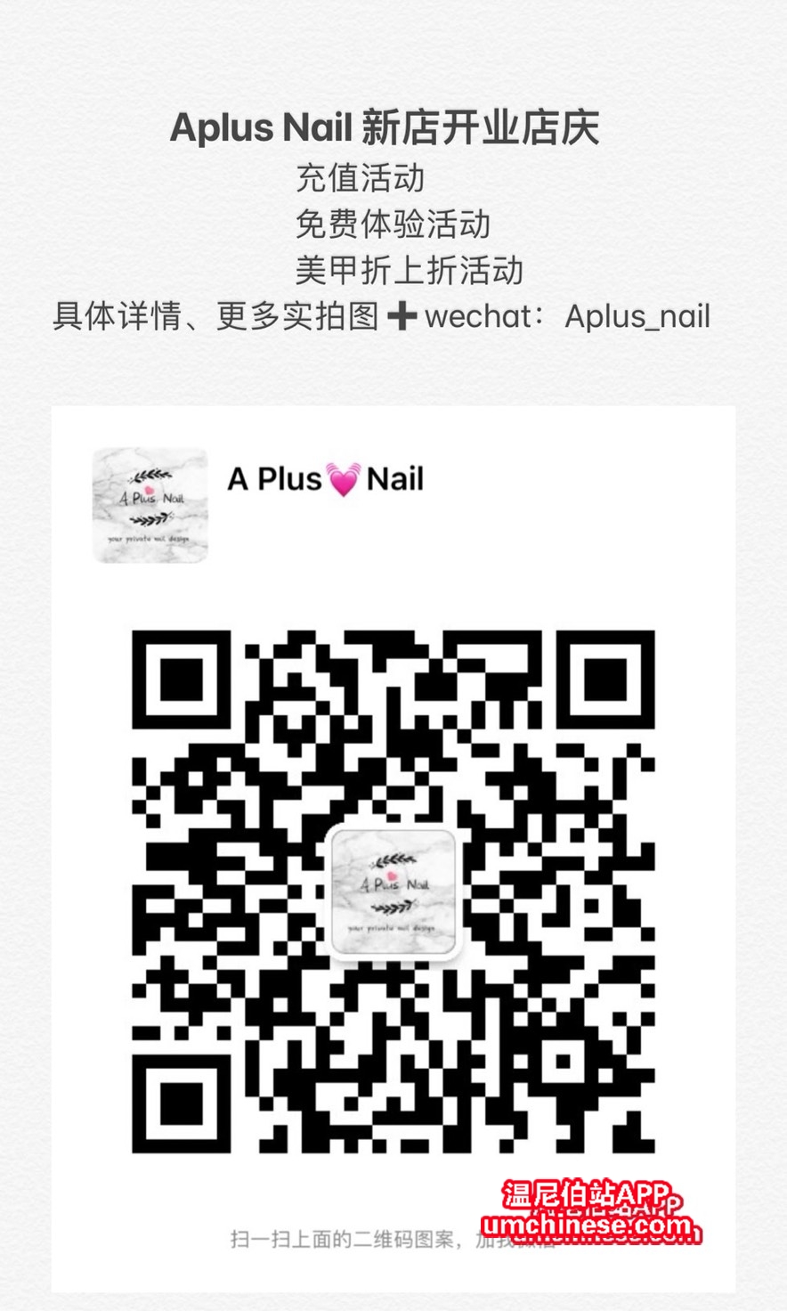 温村美甲去哪里呢? 当然是Aplus nail啦 新店开业活动力度大,优惠多多,需要美甲的各位小仙女们赶紧加微信咨询做起来吧