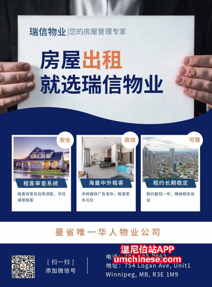 瑞信物业管理公司(Realtrustia Property Management)是温尼伯唯一华人物业管理公司,自2007成立以来,已为广大中外业主服务十余年,目前管理近300套各种类型房屋,凭借着良好的口碑及丰富的房屋管理经验,深受业主 ...