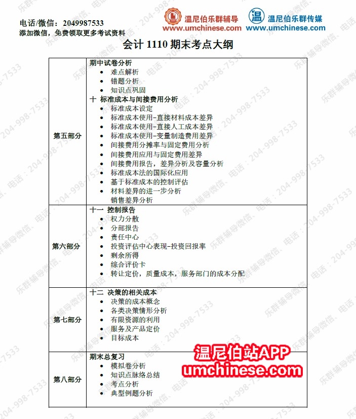 Acc1110课程大纲考点...临近期中末考想要不挂科?超常发挥?【乐群辅导】帮您实现!大班、一对一...详情尽快联系我们吧!