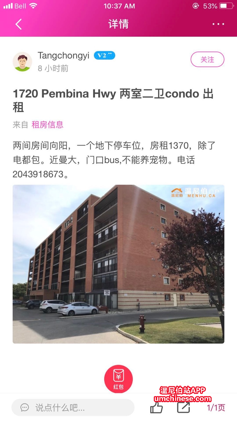 因家里有急事回国,我租期至五月,可短租或与房东商议长租。交通便利、房间干净、周边两个公园及温泉,楼下配备健身房。下图为我们租房时房东的联系方式。