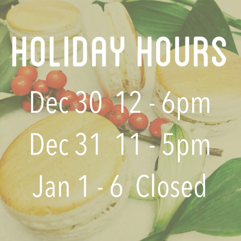Dec 30 12-6:30pm Dec 31 11-5pm Jan 1-6 休息 Jan 7 照常營業 12-6:30pm
