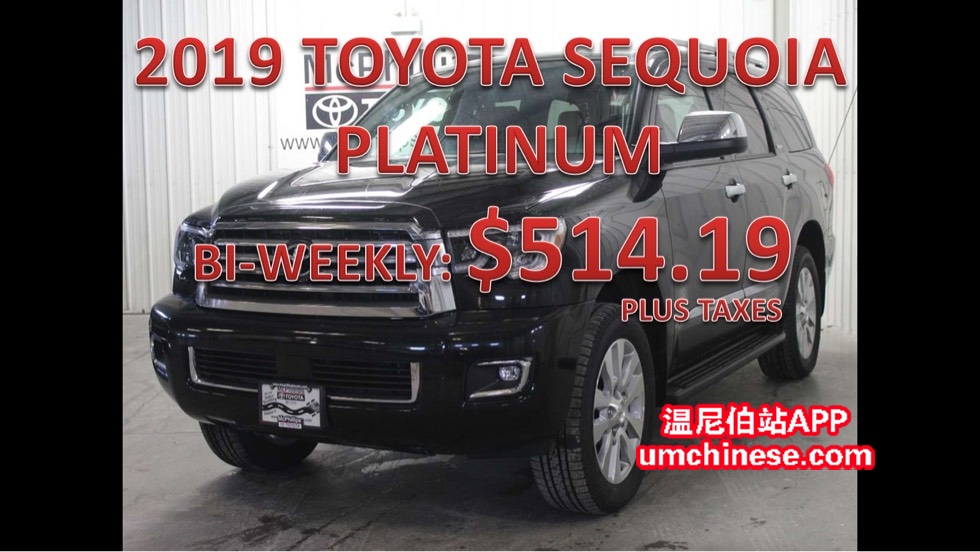 LEASE 2019丰田红杉铂金版今日特惠! (**2019 TOYOTA SEQUIA PLATINUM**) (**S168589**) 这台车今日只要 (**$514.19每两周 **利息5.29%**60个月LEASE**) O.A.C. 加税. 现金(**$80,638.70**)加税. 欢迎今天给我打电 ...