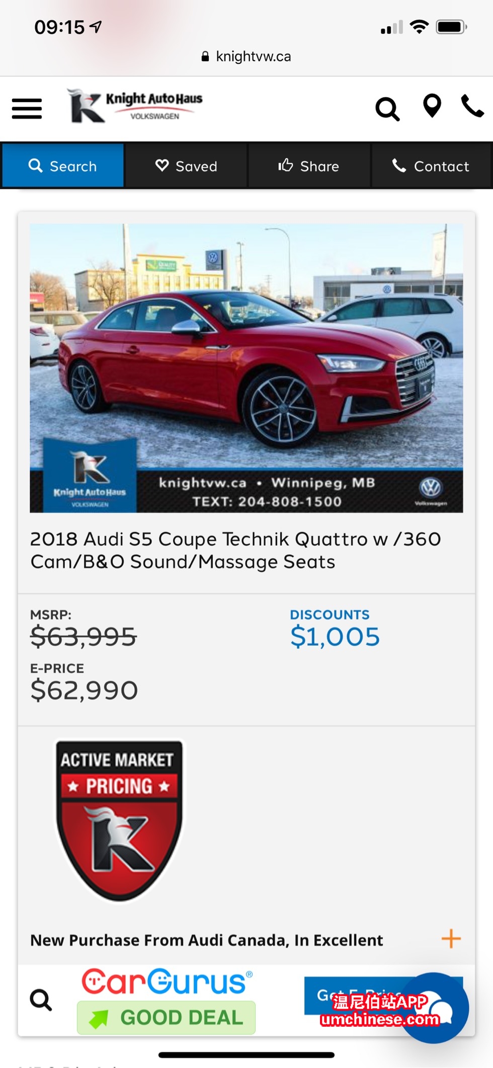 Pembina大众车行新的一台2018 Audi S5 Technik. 这台车车况相当不错,基本上准新车车况,只开了一千公里,不仅是顶配,并且带有选配的Advance Driver Assistance pkg,quattro with sport differential, Audi Ddynam ...
