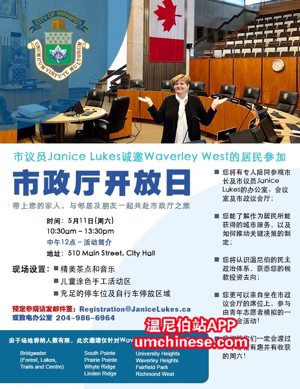 5-11日,南区议员Janice Lukes在市政厅City Hall举办开放日活动,邀请所有住在Waverley west的居民(详细小区见海报左下角蓝色部分)参加,现场会有中文引导员,机会难得,有兴趣的朋友可以点击http://janicelukes.c ...