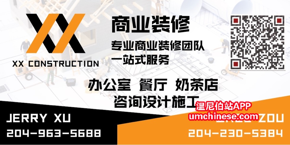 专业商业装修。奶茶店,餐馆,办公室。10年本地经验。欢迎电话咨询。大量实例。由于商家隐私不便发图。204-963-5688