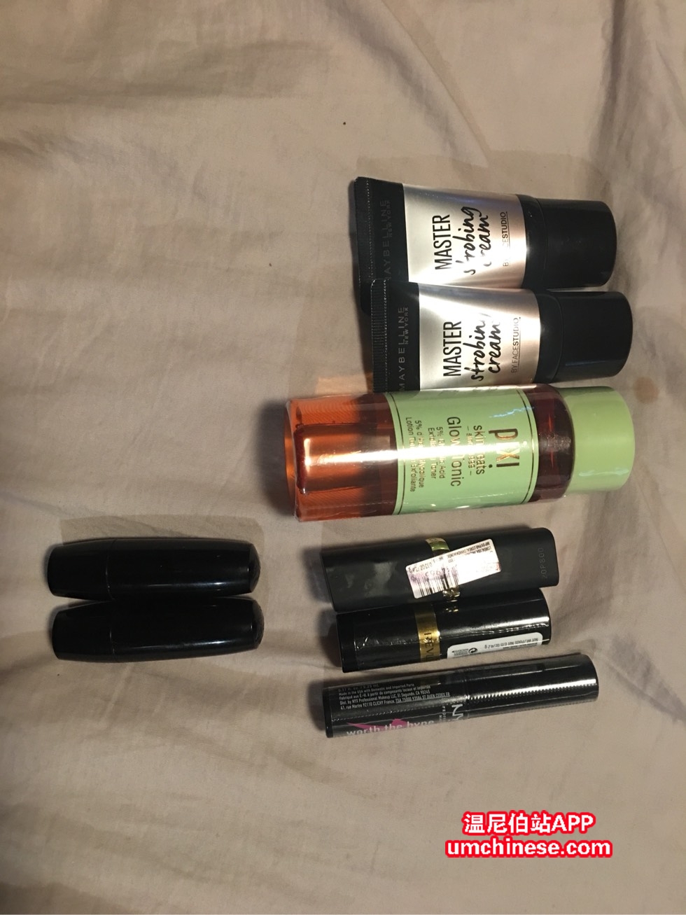 全部10刀 两个全新美宝莲妆前乳 一支欧莱雅全新未拆封口红 一支露华浓全新未拆封口红 两支9.9成新兰蔻口红 一个水(全新)一个睫毛膏(全新)微信13811213417