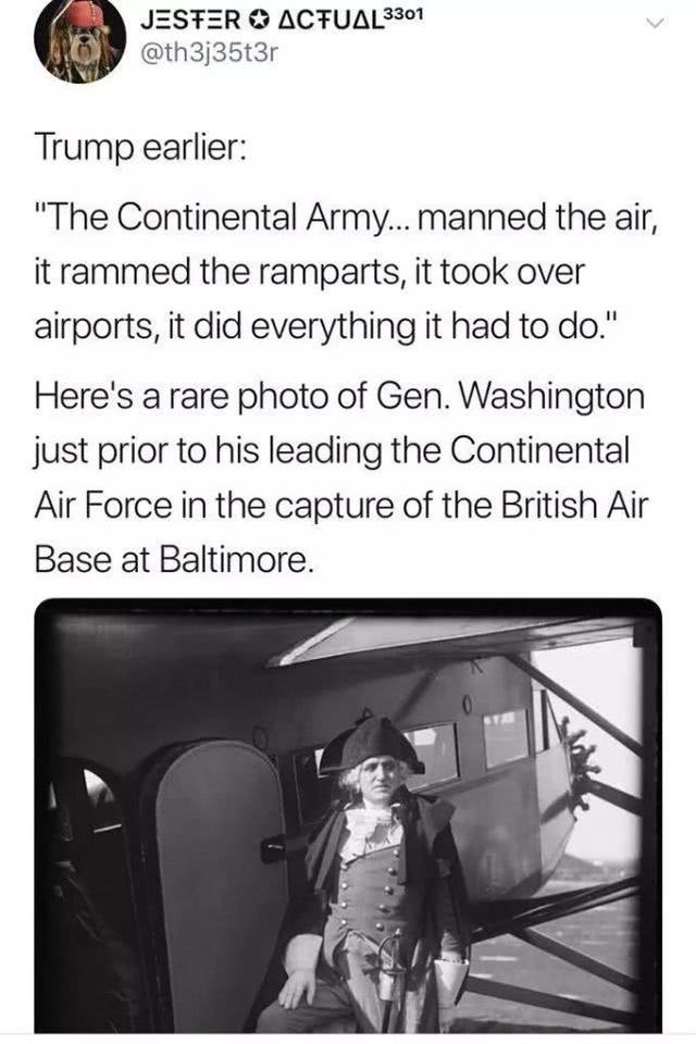 在7月4日的那场伴有战机通场的配乐单口相声中,因为大雨导致现场提词器发生了故障,这倒使得川普这位相声演员顺势玩了不少“现挂”。比如当他谈及18世纪美国独立战争时期的大陆军时,川普居然充满自豪地说,“我们的 ...