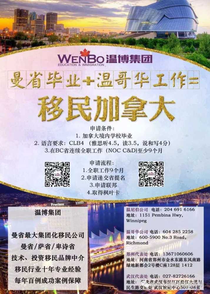 【温博重磅出击:曼省毕业+温哥华工作=移民加拿大】曼省学校毕业,温哥华工作9个月,语言CLB4分就可申请BC省提名!💞温博BC省提名移民项目咨询火热进行中