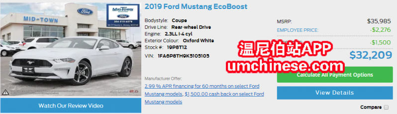 福特新车野马Mustang,员工折扣。各个配置现车,大幅度现金折扣! 详情咨询 Mid-Town福特 华人销售 James 电话:204-296-7891