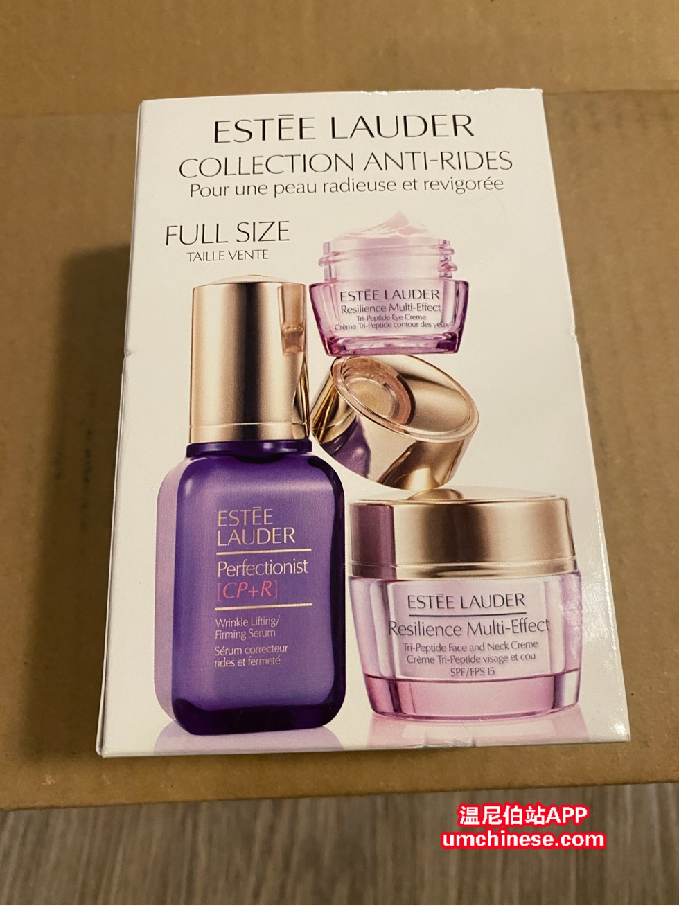 低价出一个全新雅诗兰黛抗皱紧致精华套装,内含一个30ml抗皱精华,和一个日霜和眼霜的中样,购于免税店,原价100左右,光精华税前就92,现65出,可小刀,全新!请联系2048947627 买就送酒粕面膜一张