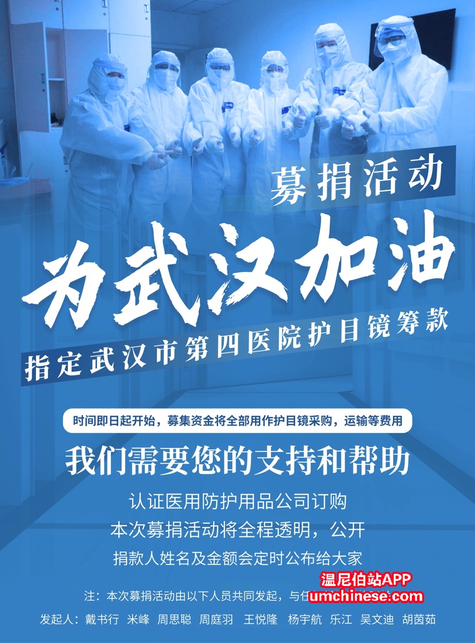 更新如下 募捐时间两天及两万采购另加运费目标达成,现终止募捐。 进一步行动已向温尼伯近百位爱心捐赠者公开,如有任何剩余费用将全部捐给韩红基金会。 作为身在海外的武汉人,我们决定为自己的家乡尽一份力 ...
