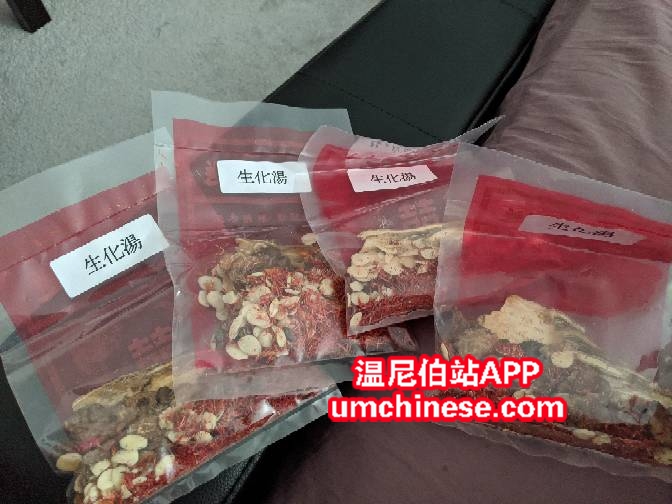 刚从温哥华买的配好四包生化汤 妈妈产后食用的,$25