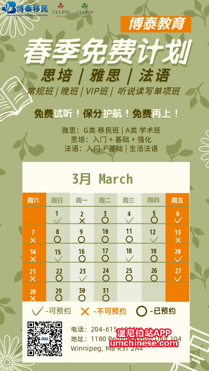 【博泰教育 高效学语言】 电话:204-615-6555地址:1180 Pembina Hwy Unit 104, Winnipeg, MB R3T 2A4