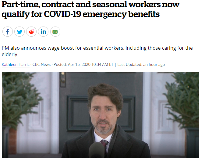加拿大总理杜鲁多刚刚宣布扩大紧急救助金CERB的申请资格,季节性工人、EI即将领完的人、以及工时减少导致月薪低于$1000加元的人现在均符合资格申请领取2,000加元CERB救助金,并承诺尽快提高月薪低于$2500加元的前 ...