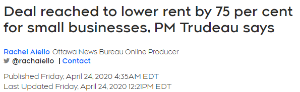 总理贾斯汀·杜鲁多(Justin Trudeau)今天宣布,已经与所有省份达成协议,以实施承诺的企业租金援助计划,符合资格的小企业的租金将减免多达75%。 加拿大在今次抗疫中,总理杜鲁多不断宣布援助受疫情影响 ...