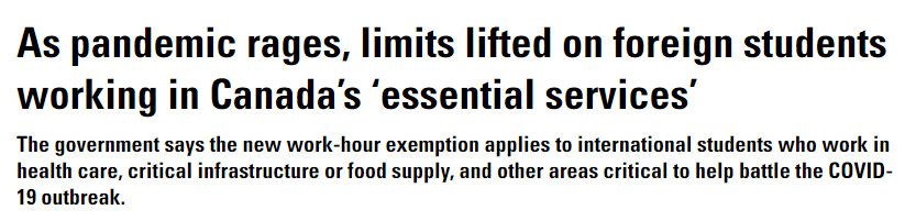 加拿大为参与抗击COVID-19,投身必要服务工作的国际学生免除障碍,对相关规则进行临时修改,以帮助医疗护理设施及其他面临压力的工作场所。 移民、难民和公民部长,马可·蒙蒂西罗Marco E. L. Mendicino说 ...