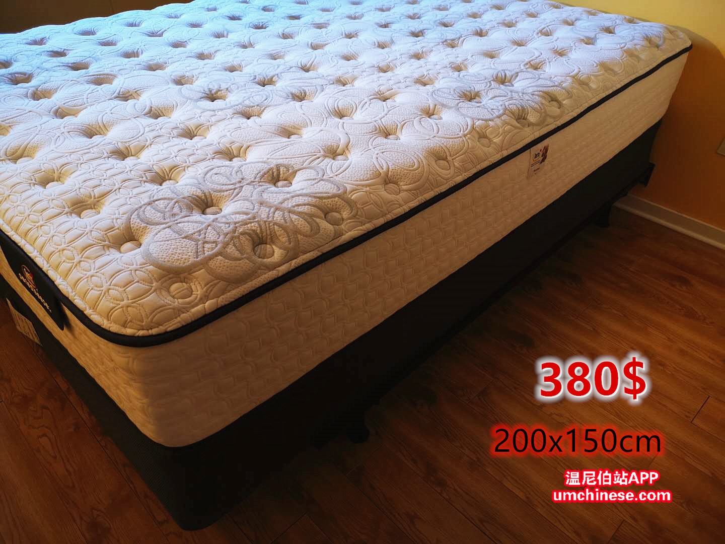 仅买了两年的高级品牌的床垫+床架(2套),因下月将搬离温尼伯,超低价出售。原价895$+税,现380$出售(含送货费)。Queen Size 150x200cm. 联系:647--2306182