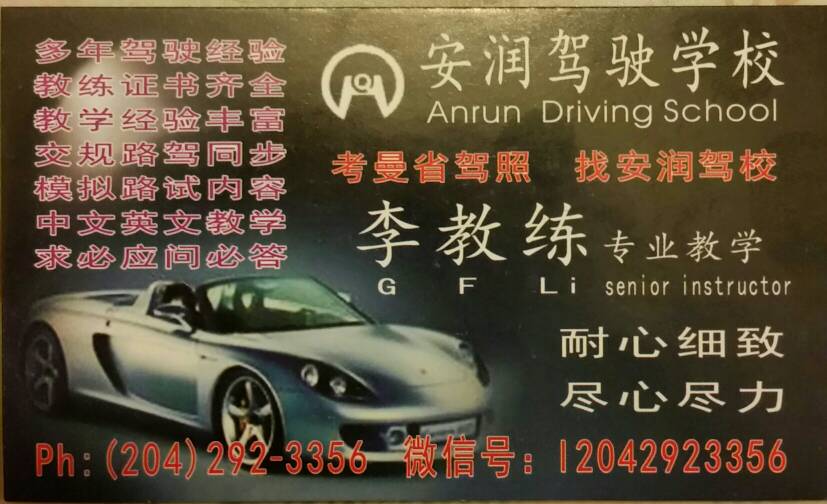 考曼省驾照,找安润驾校 尊敬的朋友和同学们 欢迎你们来到温尼伯生活 ...
