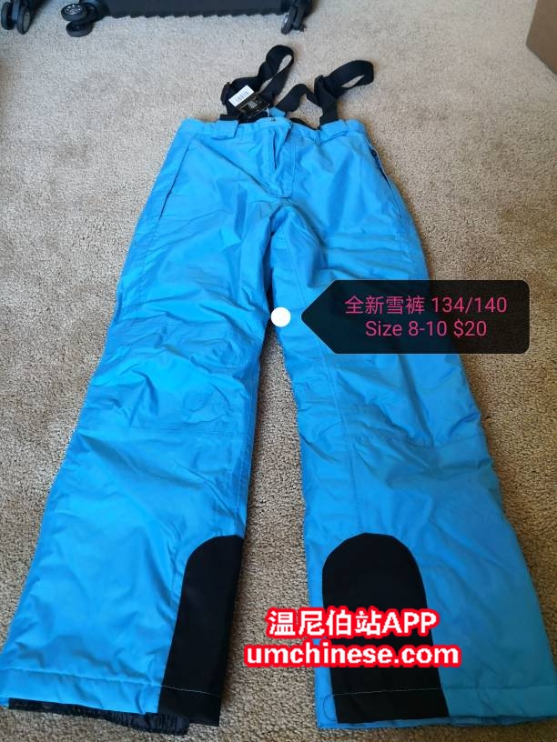 雪裤全新,8-10码,适合130-140左右身高,$20(已出) 女大童冬靴9新,3码,毛很软很舒服,只穿过一两次,$20 电话或短信4319961002