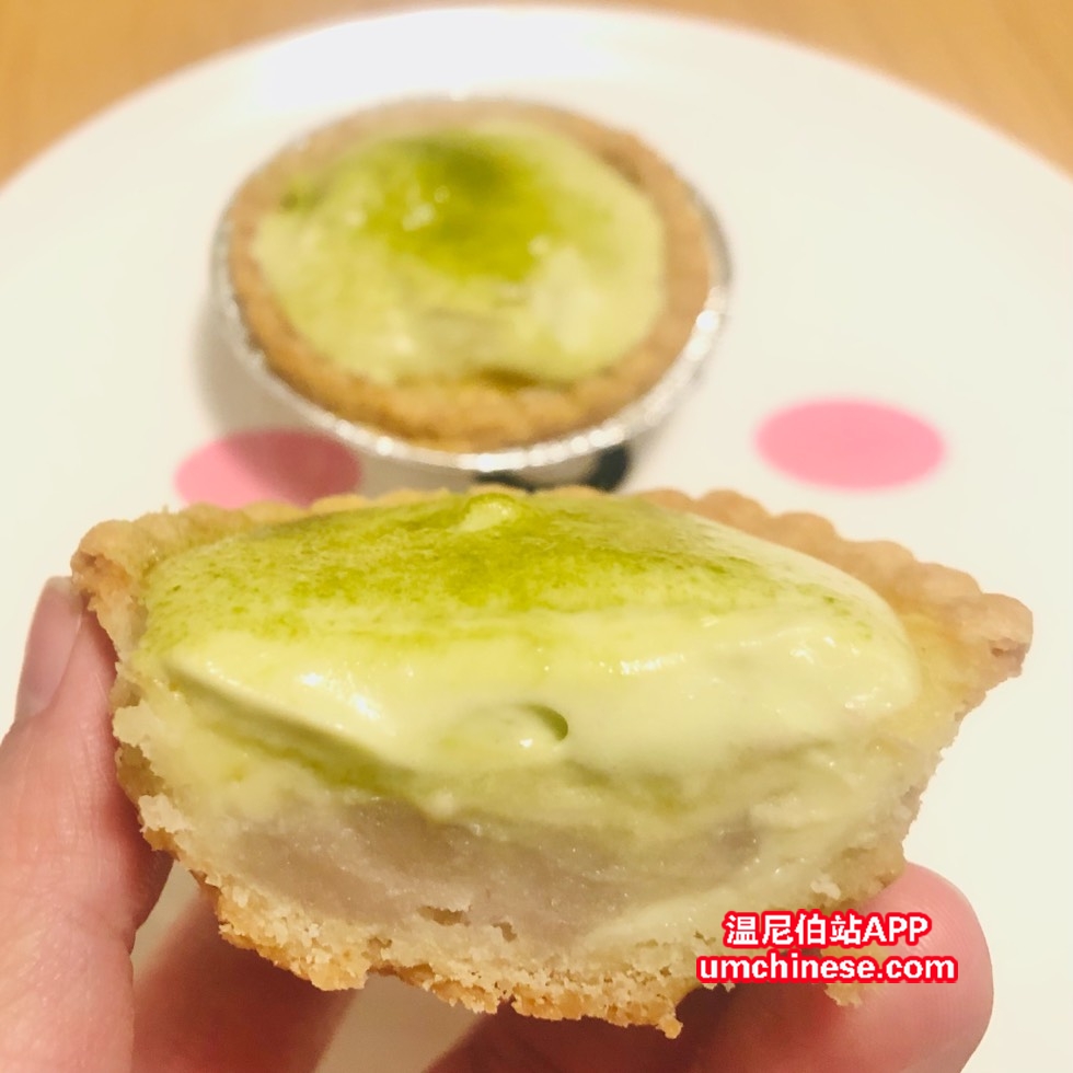 今天新品:抹茶乳酪双层蛋挞 咬一口又酥又香又嫩 清新的抹茶香味, 浓郁醇厚的奶酪, 简直就是天生一对 办公室的下午茶 聚会点心都极好哒! 加V了解一下哦
