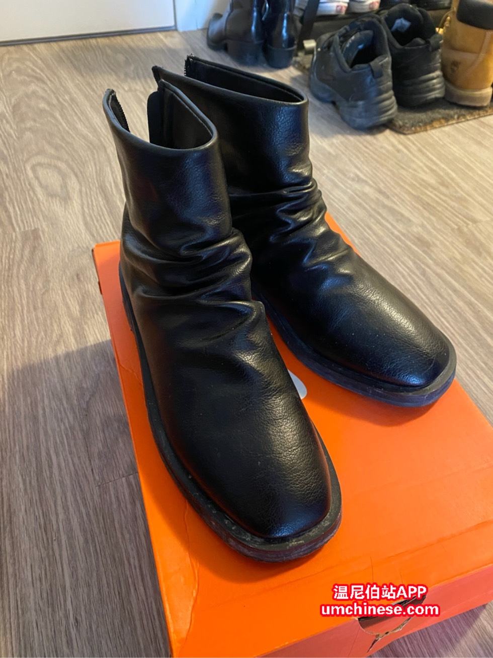 九新,穿过几次,回去擦一下侧边就很新了。前面褶皱款,后面拉链,里面的细绒很软,靴子质量好。10刀,南区自取,送货+3